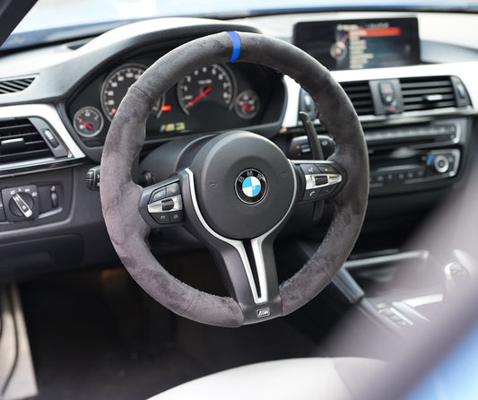 BMW F-Series Alcantara Suede Steering Wheel Cover DIY (Blue Stripe)
