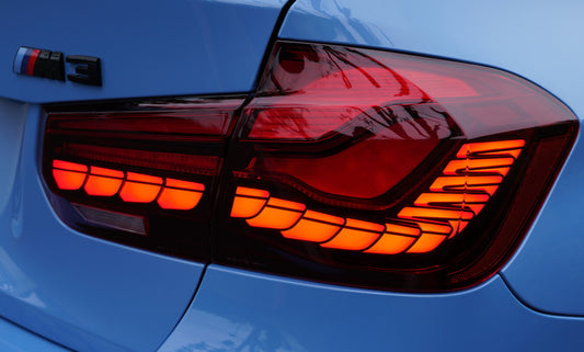 BMW 3 Series (F30) & M3 (F80) GTS Style OLED Sequential Tail Lights SET in Clear Red