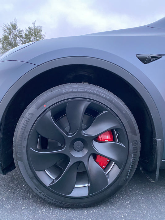 iCBL’s Tesla Model Y OEM Wheel Covers Front & Rear Gemini Turbine Blade Style Matte and Gloss Black 2017-2024 (4PCS)